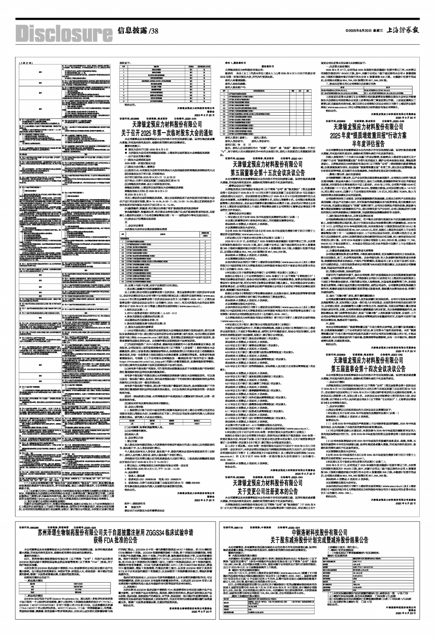 天津银龙预应力材料股份有限公司(以下简称“公司”或“银龙股份”)第五届董事会第十五次会议于2025年8月19日在天津市北辰区双源工业区双江道62号以现场方式结合通讯方式召开。会议通知和会议资料已于2025年8月9日以电话和邮件的方式送达全体董事。本次董事会会议应出席董事8名,实际出席董事8名。公司部分监事及高级管理人员列席会议。会议由公司董事长谢志峰先生召集并主持。会议的召开符合《公司法》《上海证券交易所股票上市规则》等法律法规和《公司章程》《董事会议事规则》等规范性文件的规定。