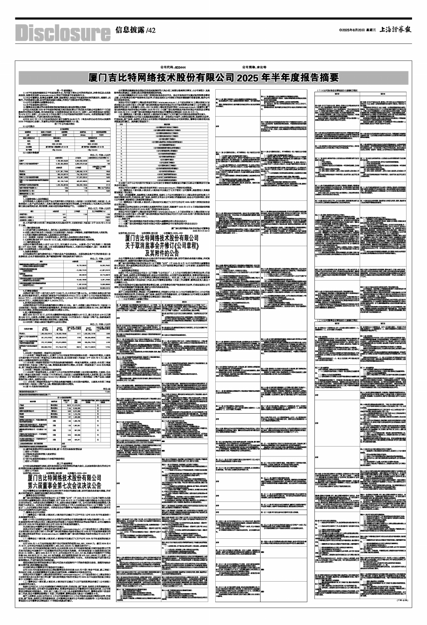 详见公司同日披露于上海证券交易所网站(www.sse.com.cn)、《中国证券报》《上海证券报》《证券时报》及《证券日报》上的《厦门吉比特网络技术股份有限公司2025年半年度报告摘要》和在上海证券交易所网站(www.sse.com.cn)披露的《厦门吉比特网络技术股份有限公司2025年半年度报告》。