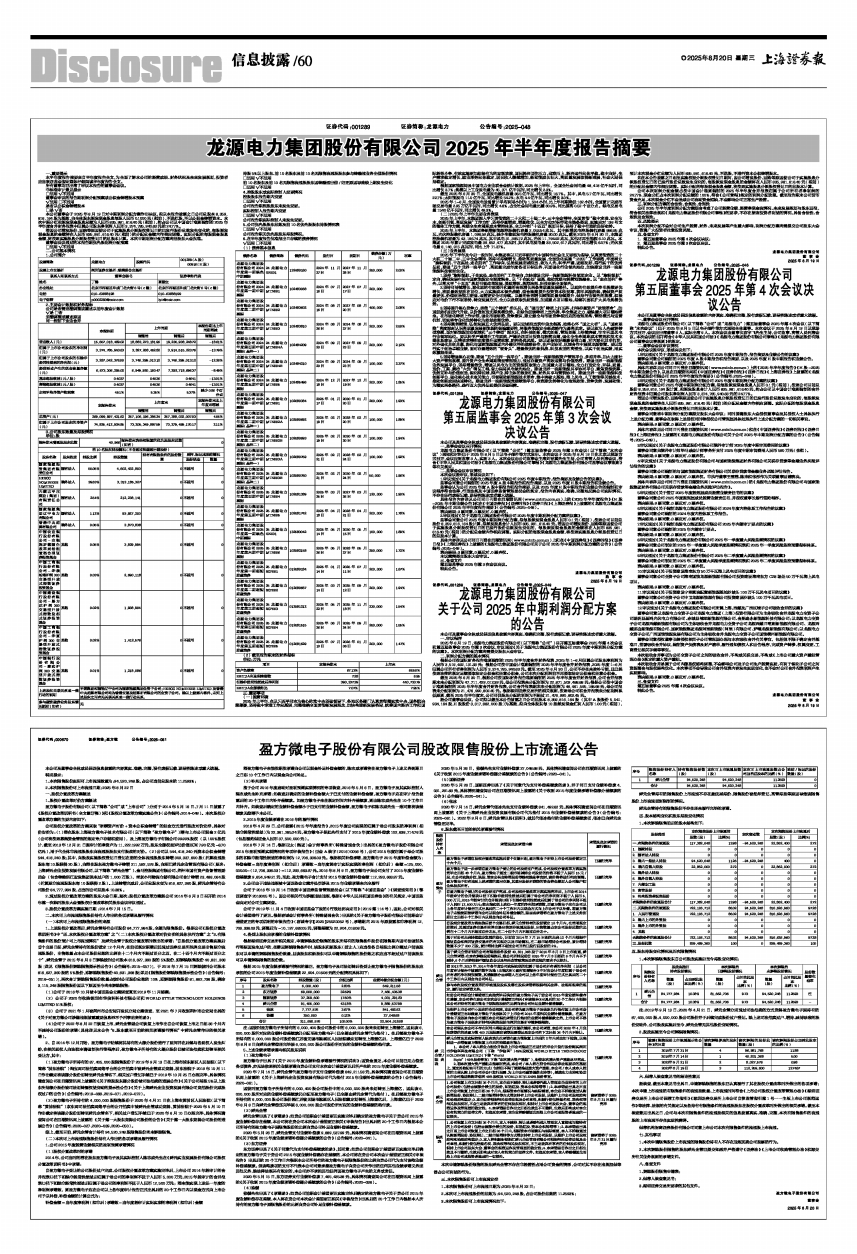 具体内容详见公司同日刊登在巨潮资讯网(www.cninfo.com.cn)上的《2025年半年度报告》《H股-2025年中期业绩公告》,以及在巨潮资讯网和《中国证券报》《证券时报》《证券日报》《上海证券报》上披露的《龙源电力集团股份有限公司2025年半年度报告摘要》(公告编号:2025-048)。