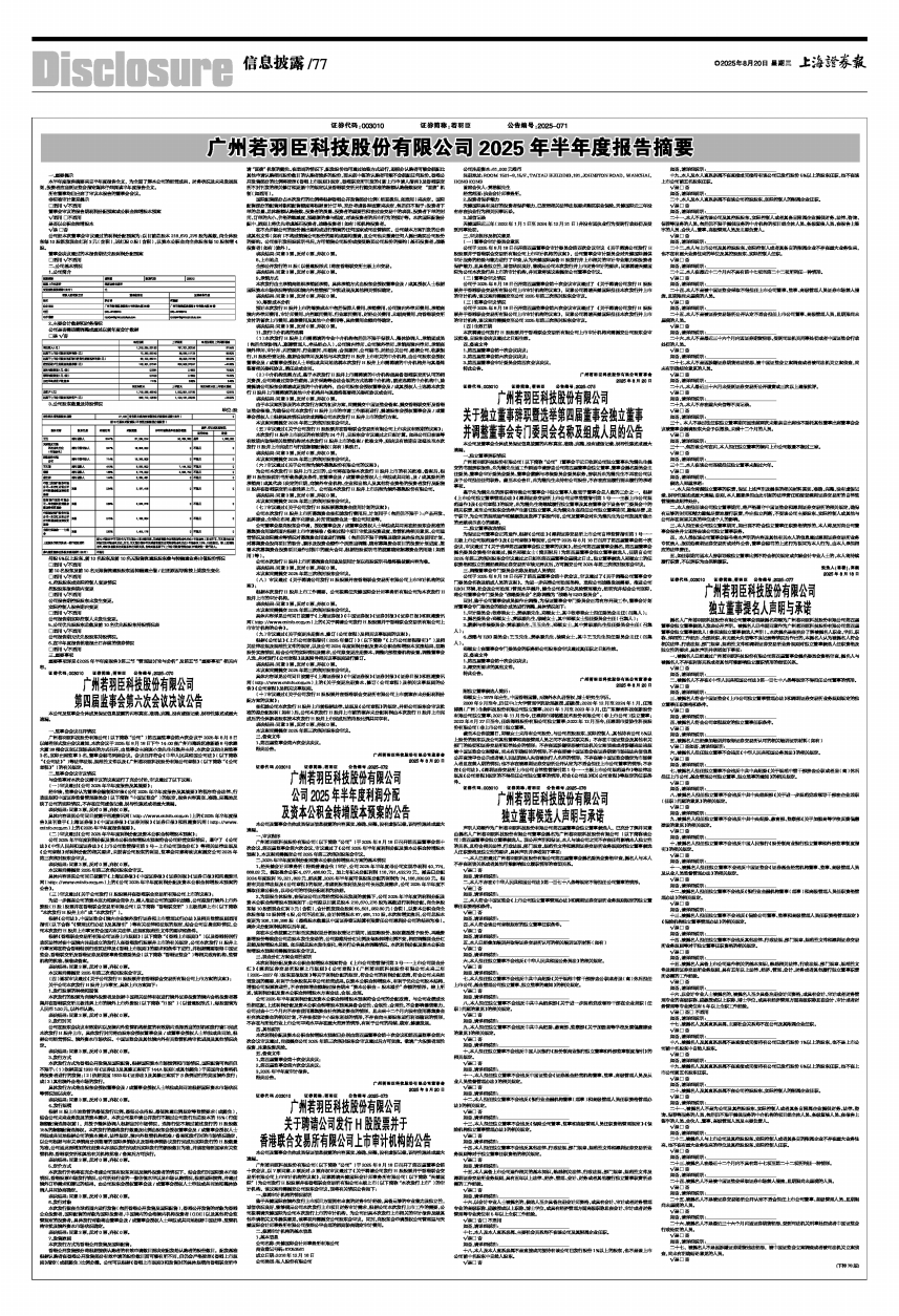 证券代码:003010 证券简称:若羽臣 公告编号:2025-077