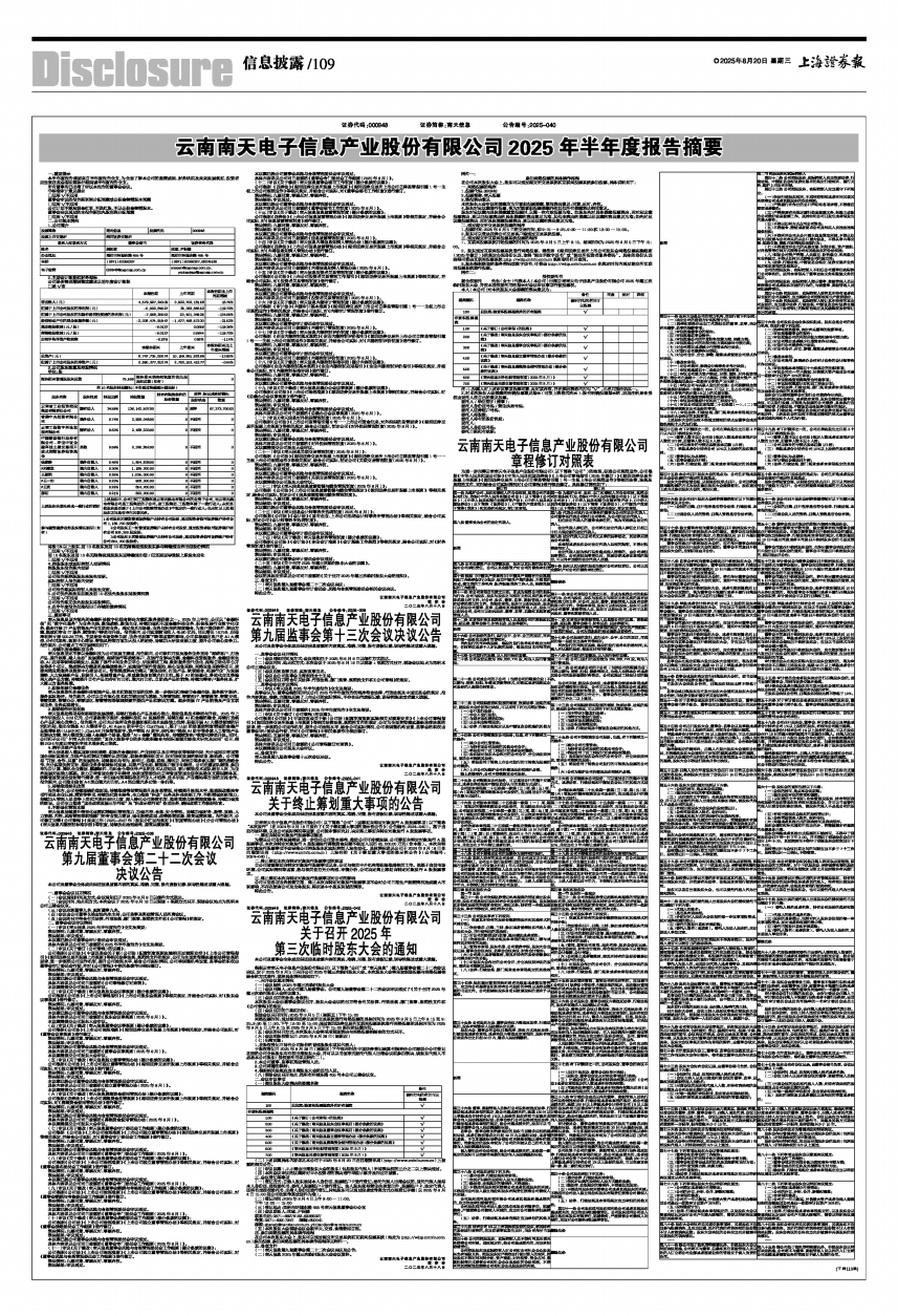 云南南天电子信息产业股份有限公司2025年半年度报告摘要