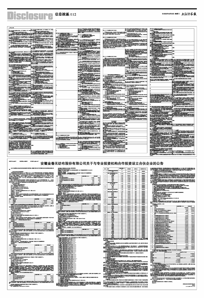 安徽金春无纺布股份有限公司关于与专业投资机构合作投资设立合伙企业的公告