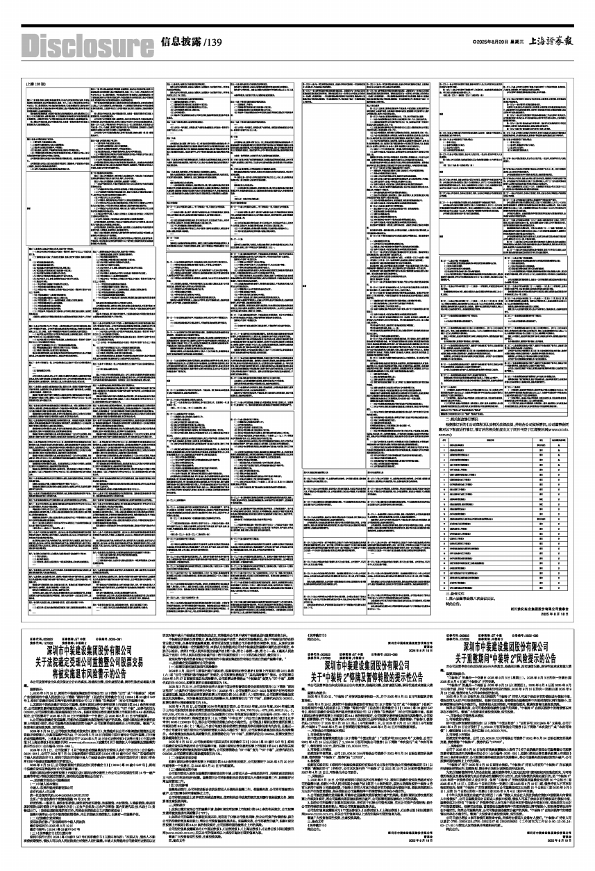 1、2025年8月19日,深圳市中装建设集团股份有限公司(以下简称“公司”或“中装建设”)收到广东省深圳市中级人民法院(以下简称“深圳中院”)送达的《民事裁定书》【(2024)粤03破申547号】,深圳中院裁定受理东莞市铭尚贸易有限公司(以下简称“东莞铭尚”)对公司的重整申请。