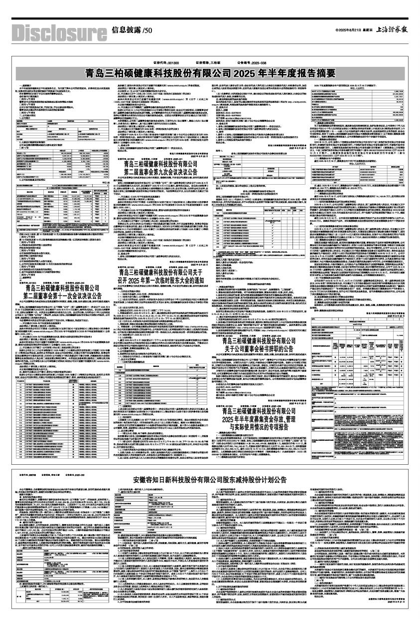 青岛三柏硕健康科技股份有限公司2025年半年度报告摘要