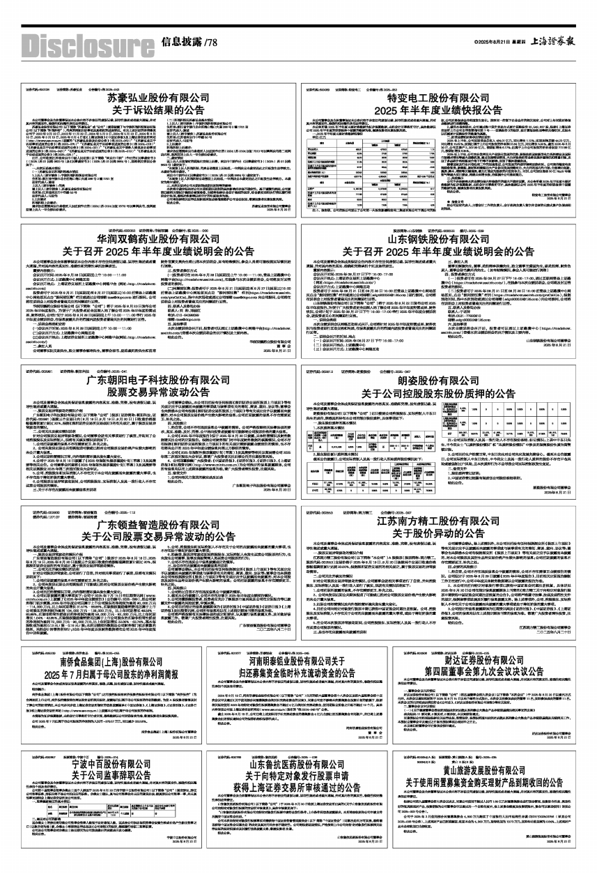 本公告所载2025年半年度主要财务数据为初步核算数据,未经会计师事务所审计,具体数据以公司2025年半年度的定期报告中披露的数据为准,提请投资者注意投资风险。