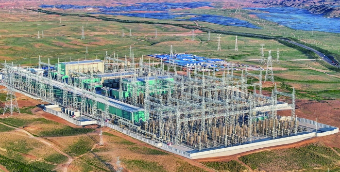这是8月19日拍摄的“宁电入湘”工程宁夏中卫市中宁换流站(无人机照片)。