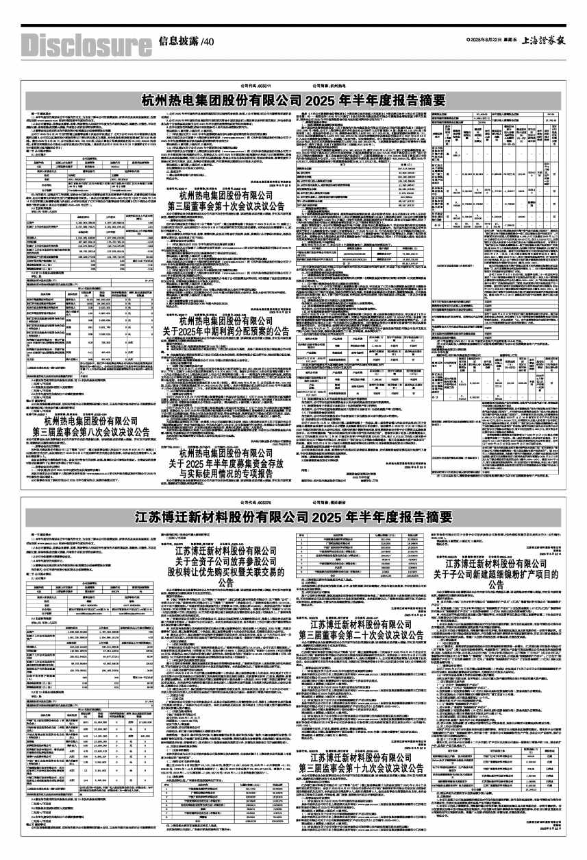 具体内容详见公司同日在上海证券交易所网站(www.sse.com.cn)及指定信息披露媒体披露的《江苏博迁新材料股份有限公司2025年半年度报告及摘要》。