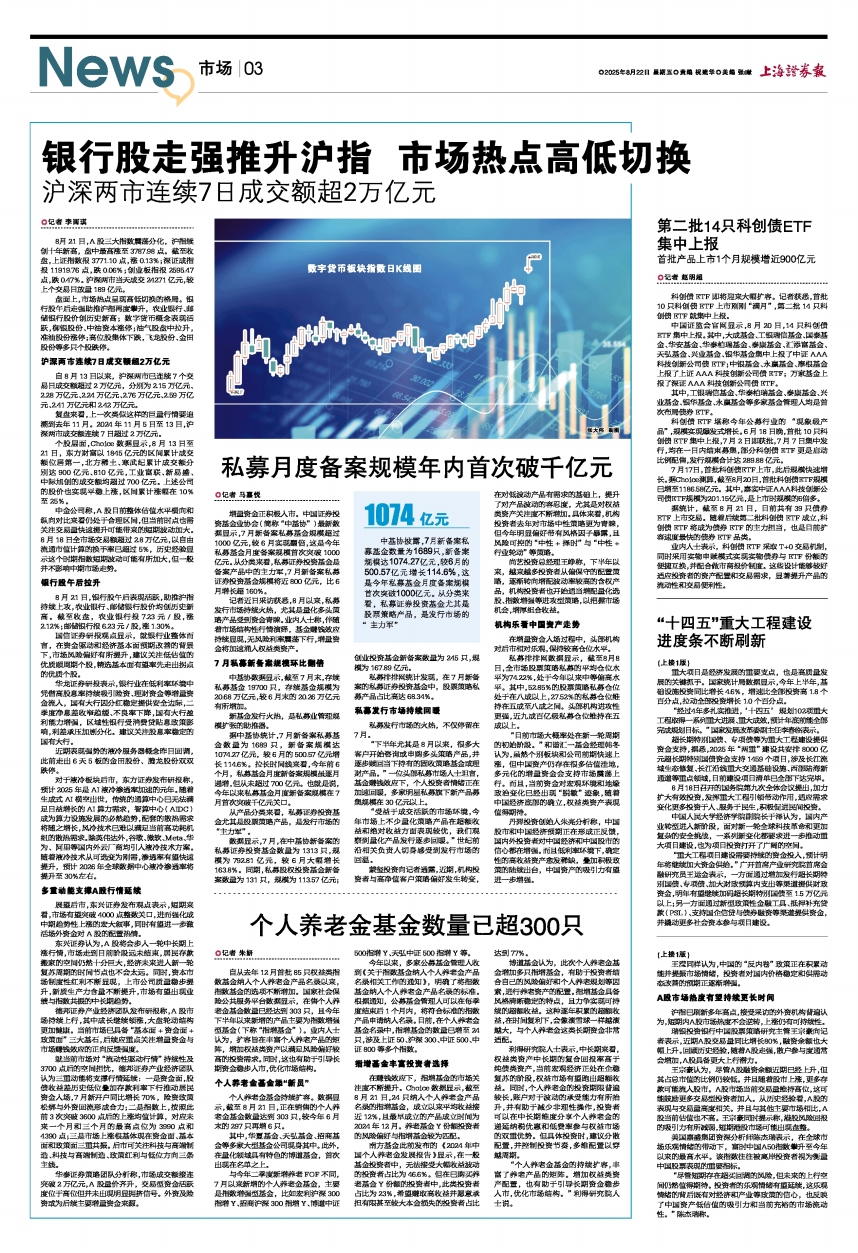 银行股走强推升沪指 市场热点高低切换 沪深两市连续7日成交额超2万亿元