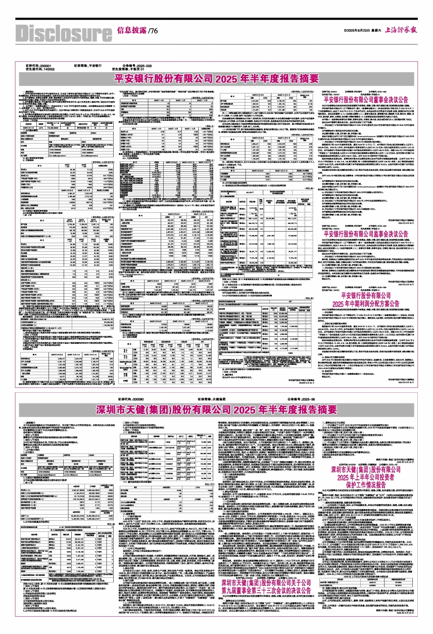 具体内容请见本行于同日在巨潮资讯网(www.cninfo.com.cn)披露的《平安银行股份有限公司2025年半年度报告》及《平安银行股份有限公司2025年半年度报告摘要》。