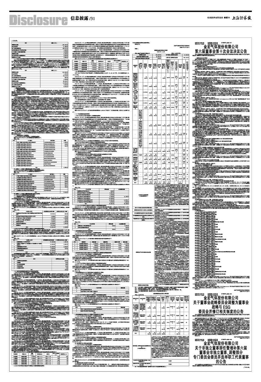 具体内容详见同日刊载于上海证券交易所网站(www.sse.com.cn)的《金宏气体股份有限公司2025年半年度报告》及《金宏气体股份有限公司2025年半年度报告摘要》。