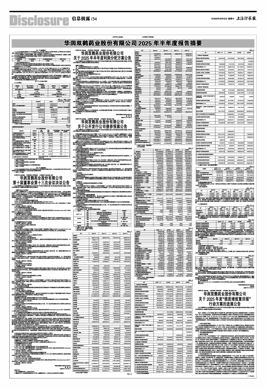 为进一步提高上市公司质量,提升公司投资价值,保护投资者合法权益,积极响应并践行“以投资者为本”的上市公司发展理念,与投资者形成良性沟通机制,向资本市场传递公司价值,华润双鹤药业股份有限公司(以下简称“公司”)于2025年4月26日发布了《关于2024年度“提质增效重回报”行动方案评估报告及2025年度“提质增效重回报”行动方案的公告》。根据上海证券交易所《关于开展沪市公司“提质增效重回报”专项行动的倡议》要求,公司应每半年评估行动方案的执行效果,现将进展情况汇报如下:
