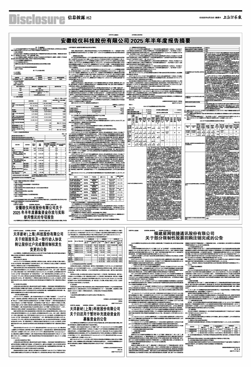 根据上海证券交易所《上海证券交易所科创板上市公司自律监管指引第1号一一规范运作》的规定,将安徽皖仪科技股份有限公司(以下简称“公司”)2025年半年度募集资金存放与使用情况报告如下: