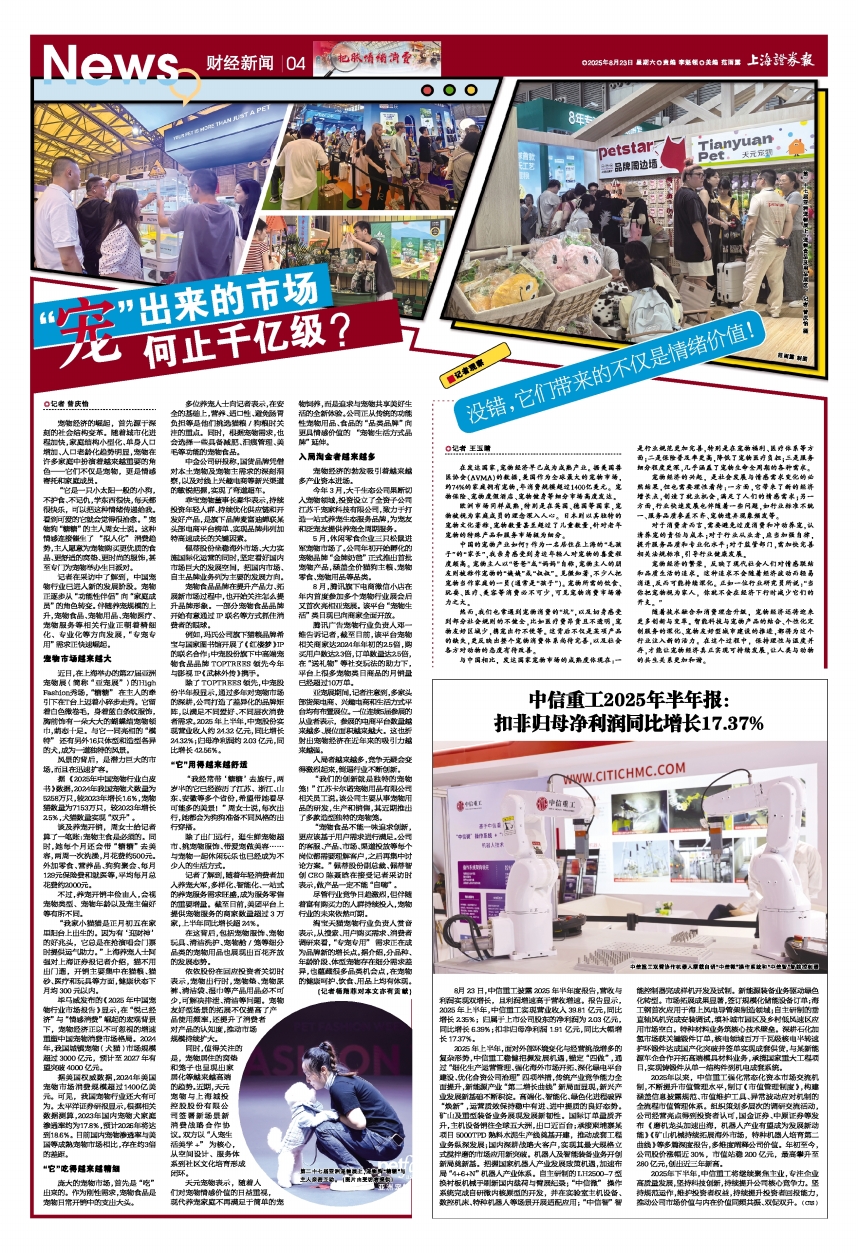 除了TOPTREES领先,中宠股份半年报显示,通过多年对宠物市场的深耕,公司打造了差异化的品牌矩阵,以满足不同爱好、不同层次消费者需求。2025年上半年,中宠股份实现营业收入约24.32亿元,同比增长24.32%;归母净利润约2.03亿元,同比增长42.56%。