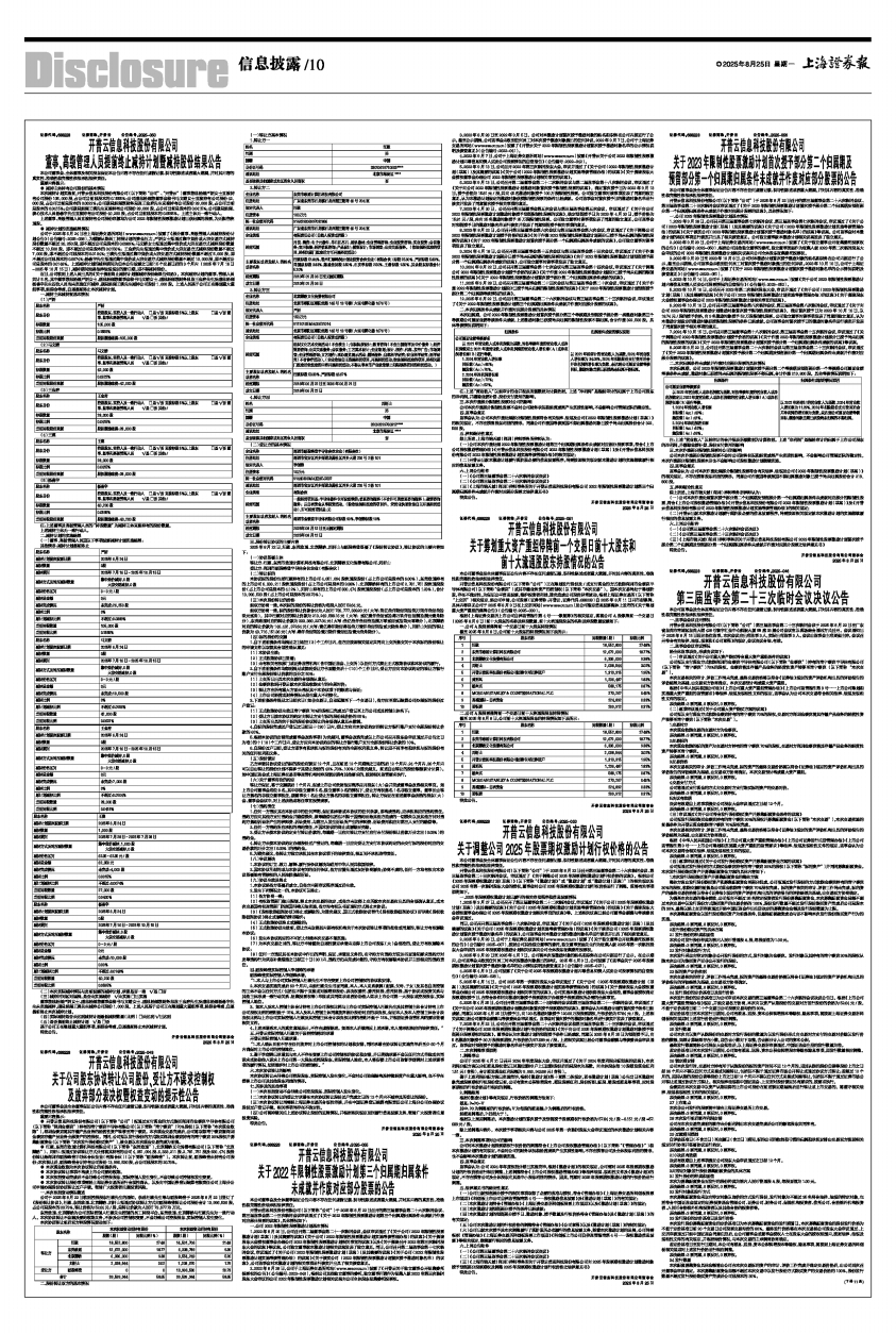 开普云信息科技股份有限公司(以下简称“公司”)第三届监事会第二十三次临时会议于2025年8月22日在广东省东莞市南城区东莞大道428号寰宇汇金中心凯旋大厦9B座33层公司会议室以现场结合通讯方式召开。会议通知已于2025年8月15日送达各位监事。本次会议应出席监事3人,实际出席监事3人。会议由监事会主席周强主持。会议召开符合有关法律、法规、规章和《公司章程》的规定,会议决议合法、有效。
