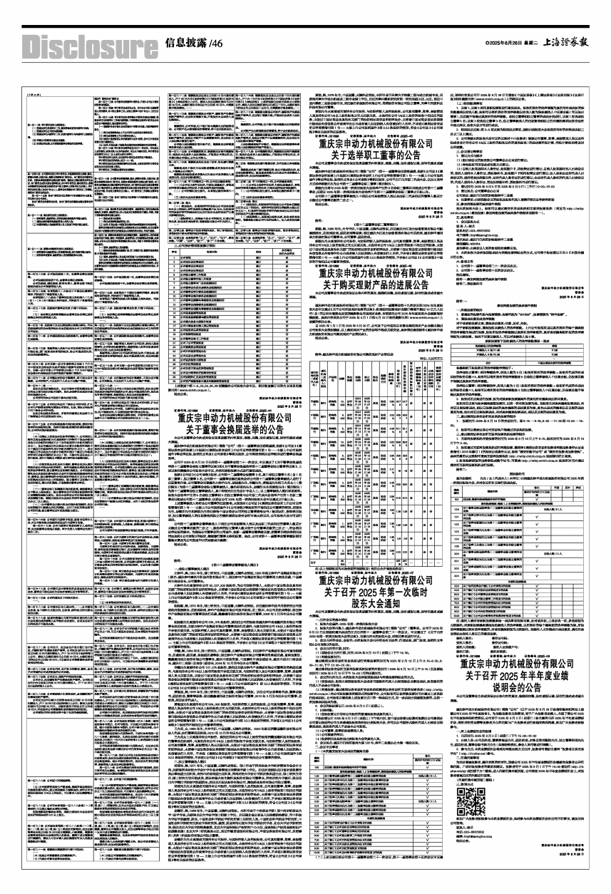 证券代码:001696 证券简称:宗申动力 公告编号:2025-46