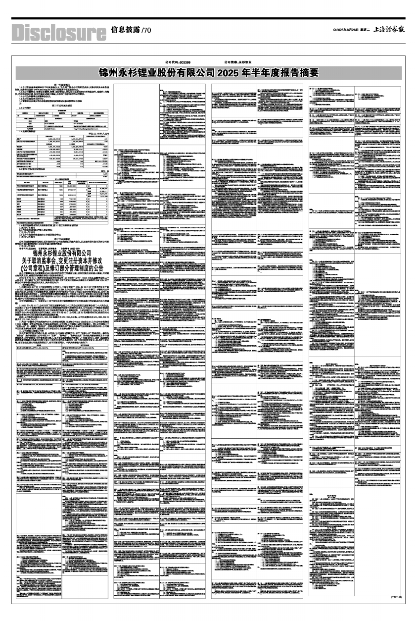 锦州永杉锂业股份有限公司2025年半年度报告摘要