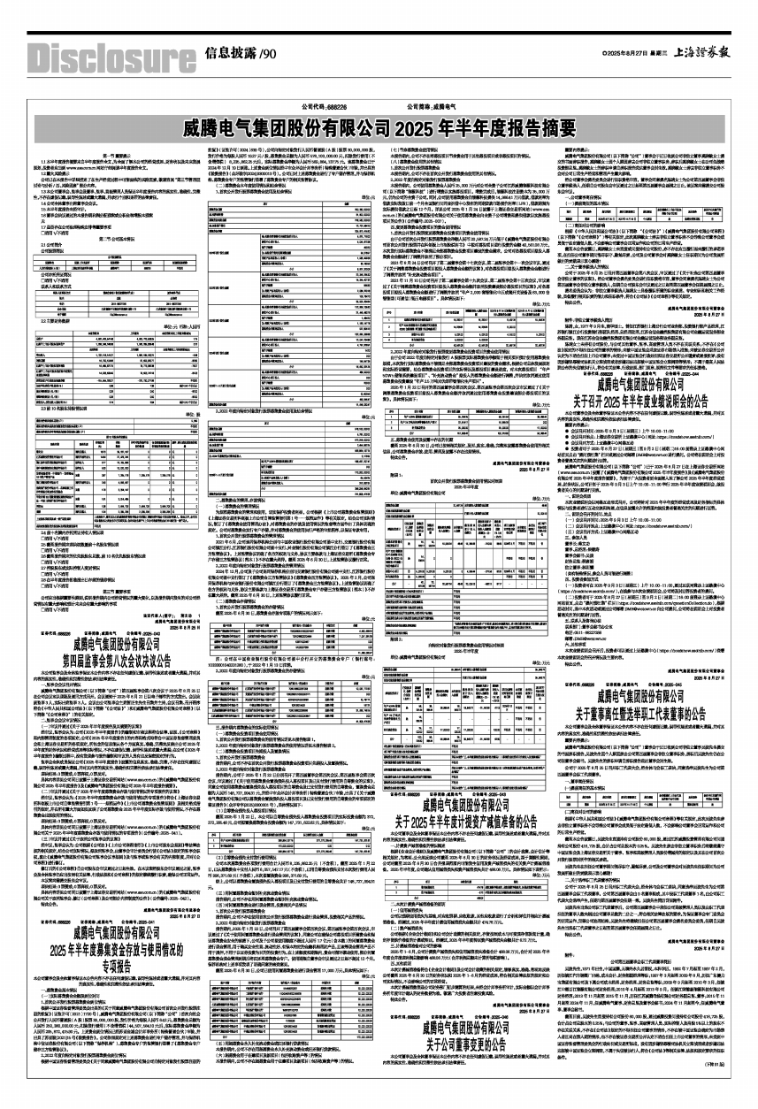 具体内容详见公司同日披露于上海证券交易所网站(www.sse.com.cn)的《威腾电气集团股份有限公司2025年半年度报告》及《威腾电气集团股份有限公司2025年半年度报告摘要》。