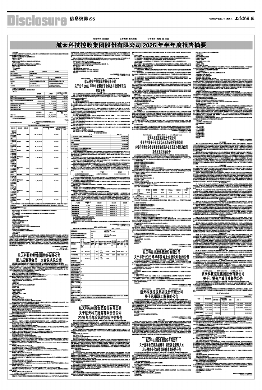 航天科技控股集团股份有限公司2025年半年度报告摘要