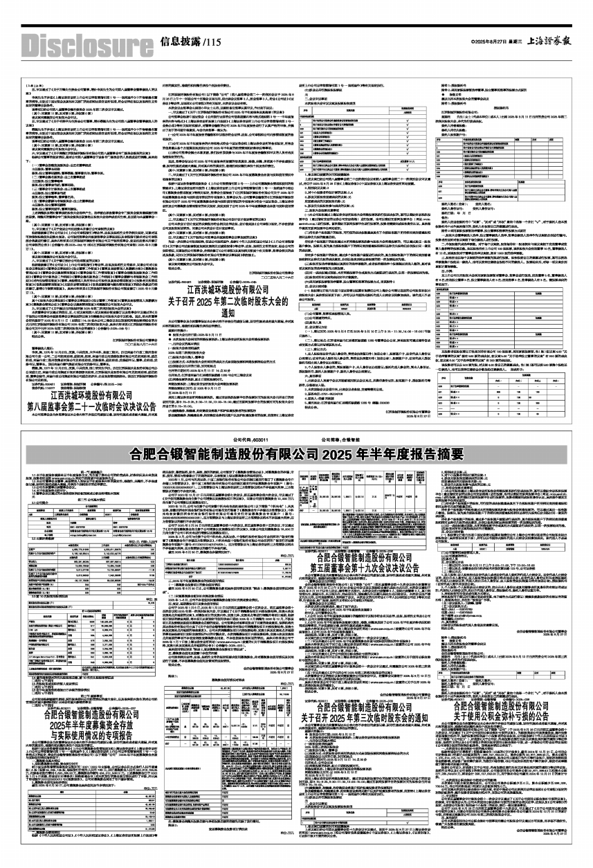 合肥合锻智能制造股份有限公司2025年半年度报告摘要