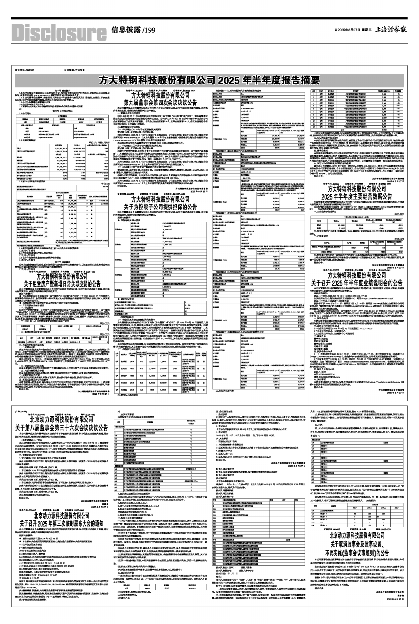 相关内容详见2025年8月27日登载于《上海证券报》《中国证券报》《证券日报》和上海证券交易所网站(www.sse.com.cn)之《方大特钢2025年半年度报告摘要》及登载于上海证券交易所网站(www.sse.com.cn)之《方大特钢2025年半年度报告》。