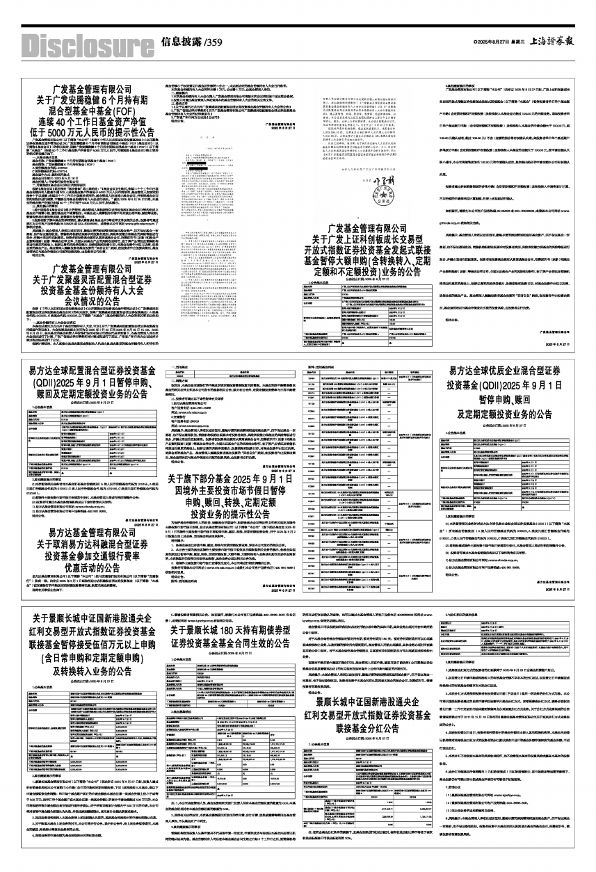 为保护基金份额持有人的利益,保障基金平稳运作,根据各基金合同等法律文件相关规定及境外主要投资市场节假日安排,易方达基金管理有限公司(以下简称“本公司”)旗下部分基金因2025年9月1日为境外主要投资市场节假日将暂停申购、赎回、转换、定期定额投资业务,并于2025年9月2日恢复办理上述业务,适用基金列表详见附件。