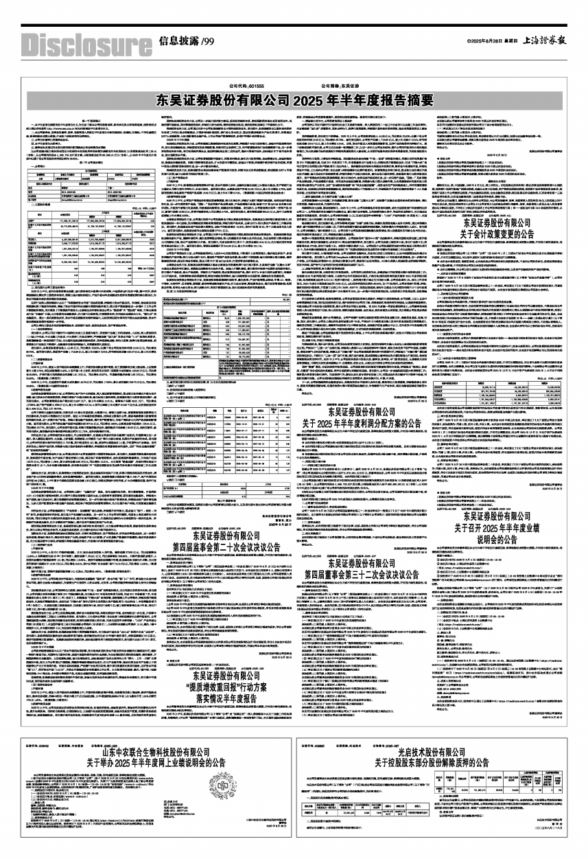 详见同日披露的《东吴证券股份有限公司2025年半年度报告》《东吴证券股份有限公司2025年半年度报告摘要》。