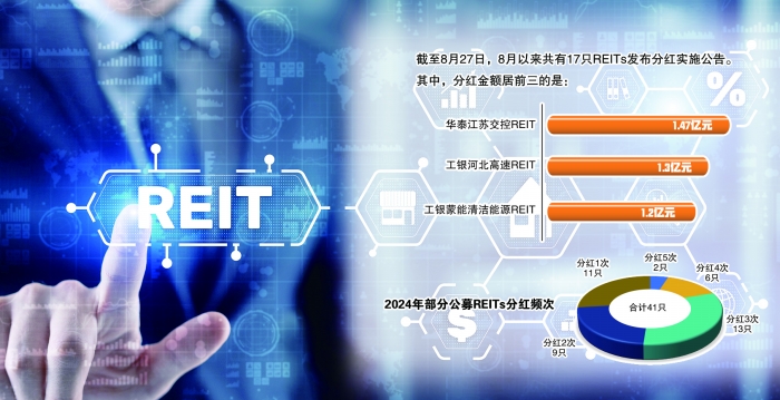 进入密集分红期的公募REITs,近期颇受投资者关注。据统计,截至8月27日,8月以来共有17只REITs发布分红实施公告,其中多只产品分红金额超1亿元。