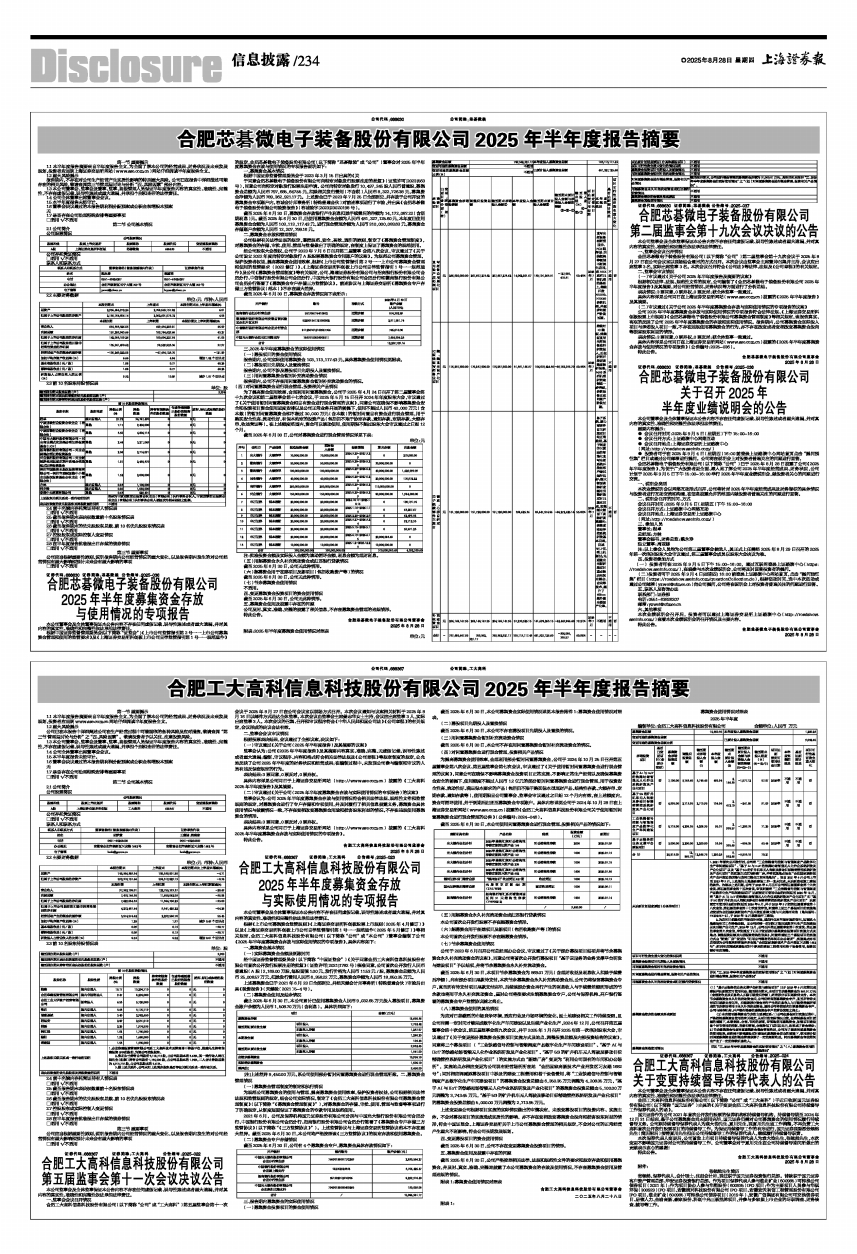 根据《上市公司募集资金监管规则》《上海证券交易所科创板股票上市规则(2025年4月修订)》以及《上海证券交易所科创板上市公司自律监管指引第1号一一规范运作(2025年5月修订)》等相关规定,合肥工大高科信息科技股份有限公司(以下简称“公司”或“本公司”)董事会编制了公司《2025年半年度募集资金存放与实际使用情况的专项报告》,具体内容如下: