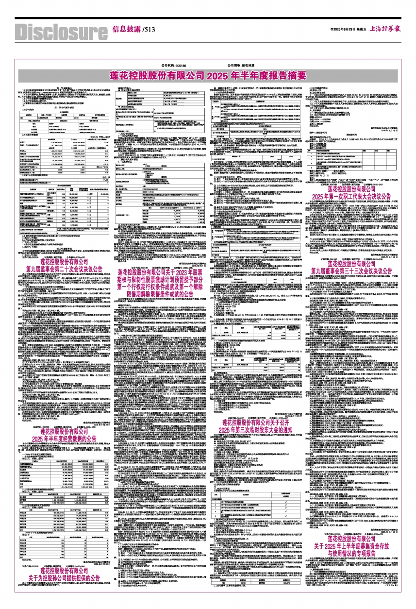 根据《上海证券交易所上市公司自律监管指引第3号一一行业信息披露》之《第十四号一一食品制造》第十四条相关规定,现将莲花控股股份有限公司2025年半年度主要经营数据(未经审计)公告如下: