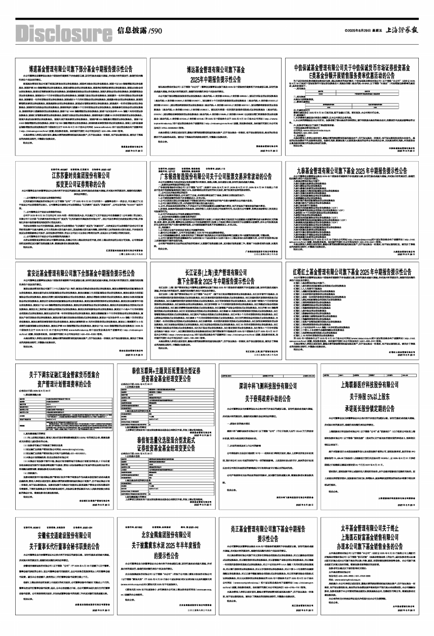 九泰基金管理有限公司旗下基金2025年中期报告提示性公告