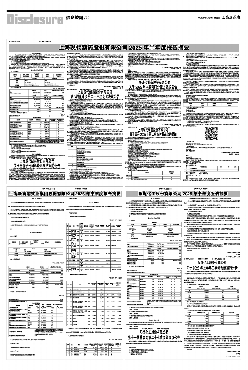 具体内容详见公司同日于上海证券交易所网站(www.sse.com.cn)披露的《阳煤化工股份有限公司2025年半年度报告》及其摘要。