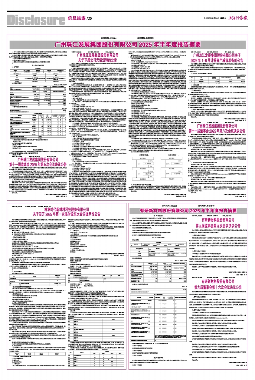 有研新材料股份有限公司2025年半年度报告及摘要的具体内容详见2025年8月30日的《上海证券报》、《证券日报》和上海证券交易所网站(www.sse.com.cn)。