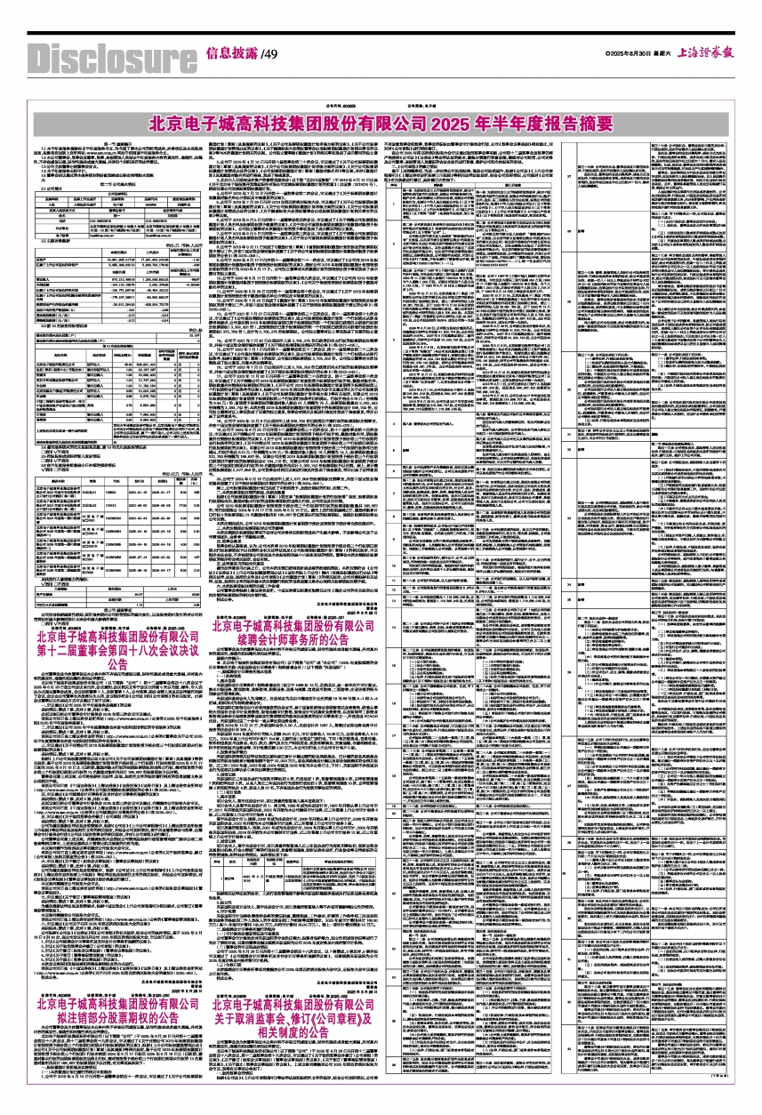 北京电子城高科技集团股份有限公司(以下简称“公司”)第十二届董事会第四十八次会议于2025年8月28日在公司会议室召开,会议通知、会议相关文件于会议召开前5天以书面、邮件、专人送达方式递呈董事会成员。会议应到董事7人,实到董事7人。公司监事、部分高管人员及总法律顾问列席了会议,会议由公司董事长齐战勇先生主持,会议程序符合《公司法》和《公司章程》的有关规定。出席会议董事以记名表决方式审议通过了如下议案: