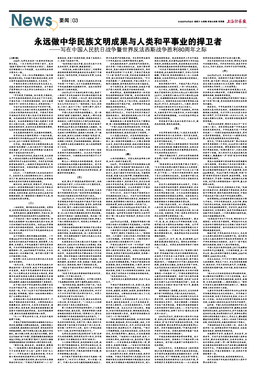 永远做中华民族文明成果与人类和平事业的捍卫者——写在中国人民抗日战争暨世界反法西斯战争胜利80周年之际