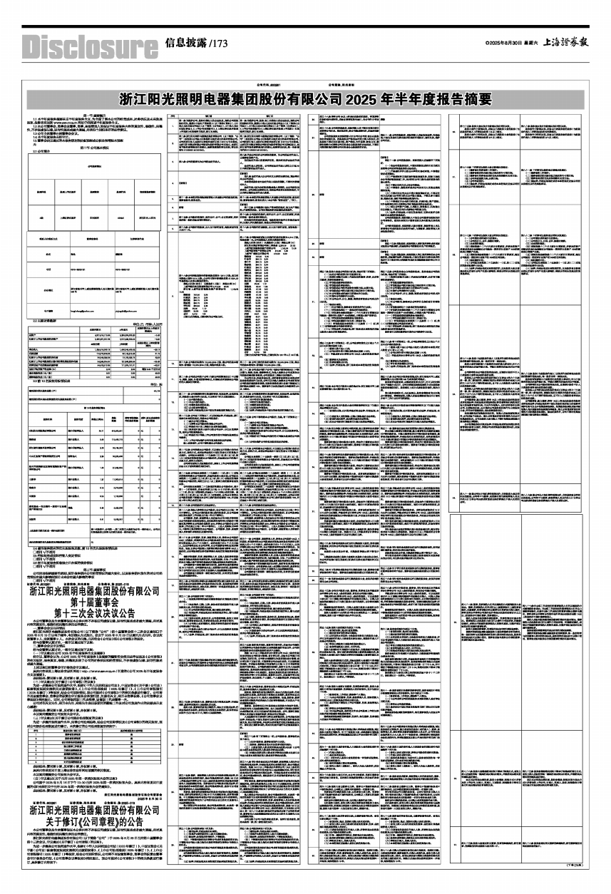 浙江阳光照明电器集团股份有限公司2025年半年度报告摘要