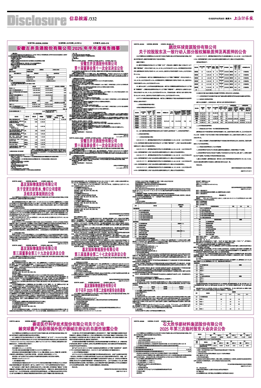 2025年8月7日,鹏欣集团将其持有的公司无限售流通股9,340,000股(占公司总股本的0.42%)质押给稠州银行,并在中国证券登记结算有限责任公司上海分公司完成质押登记。