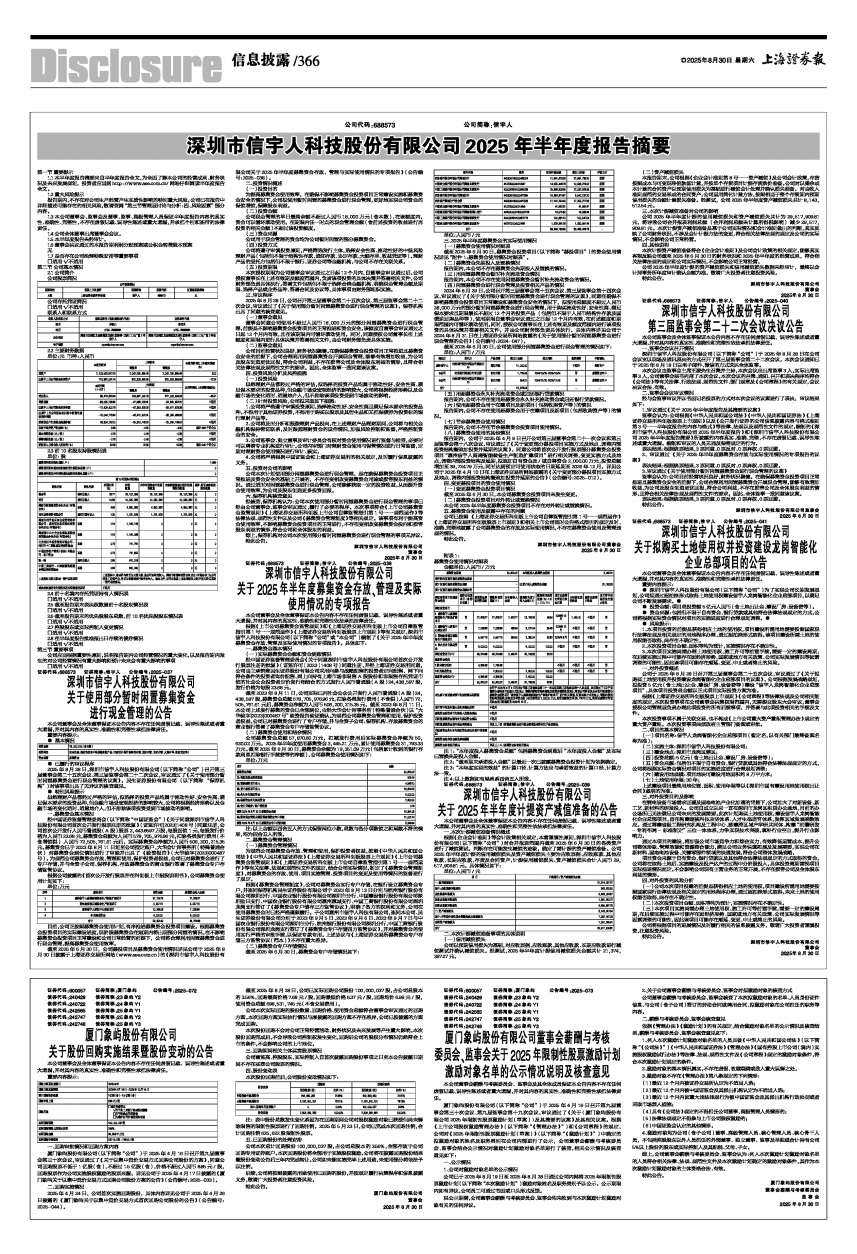 监事会认为:公司根据《中华人民共和国公司法》《中华人民共和国证券法》《上海证券交易所科创板股票上市规则》以及《公开发行证券的公司信息披露内容与格式准则第3号一一半年度报告的内容与格式》等法律、法规以及规范性文件的规定,编制的《深圳市信宇人科技股份有限公司2025年半年度报告》和《深圳市信宇人科技股份有限公司2025年半年度报告摘要》所披露的内容真实、准确、完整,不存在虚假记载、误导性陈述或重大遗漏。编制和审议的人员无违反保密规定的行为。