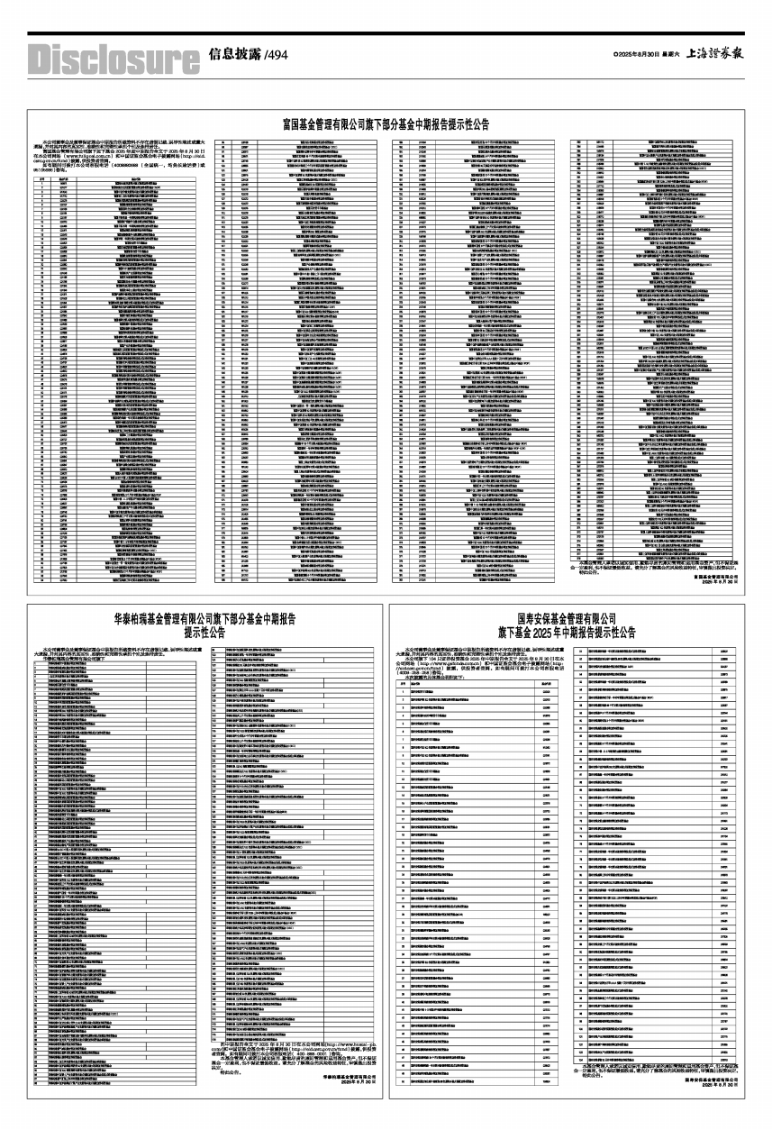 的中期报告全文于2025年8月30日在本公司网站[http://www.huatai-pb.com/]和中国证监会基金电子披露网站(http://eid.csrc.gov.cn/fund)披露,供投资者查阅。如有疑问可拨打本公司客服电话( 400-888-0001 )咨询。