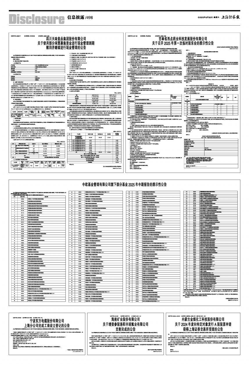 中欧基金管理有限公司旗下部分基金2025年中期报告的提示性公告