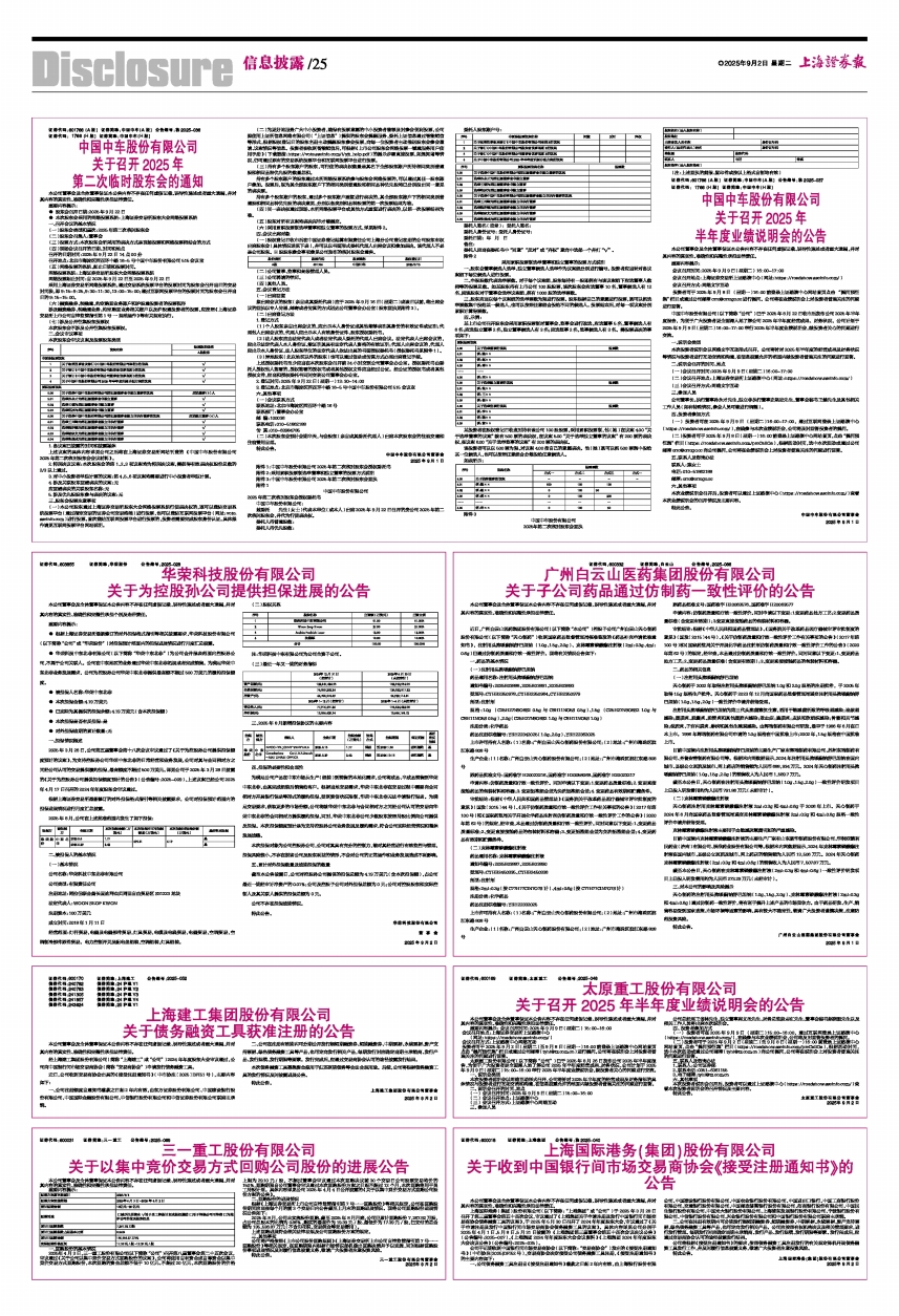 中国中车股份有限公司(以下简称“公司”)已于2025年8月22日收市后发布公司2025年半年度报告,为便于广大投资者更全面深入地了解公司2025年半年度经营成果、财务状况,公司计划于2025年9月9日(星期二)16:00-17:00举行2025年半年度业绩说明会,就投资者关心的问题进行交流。