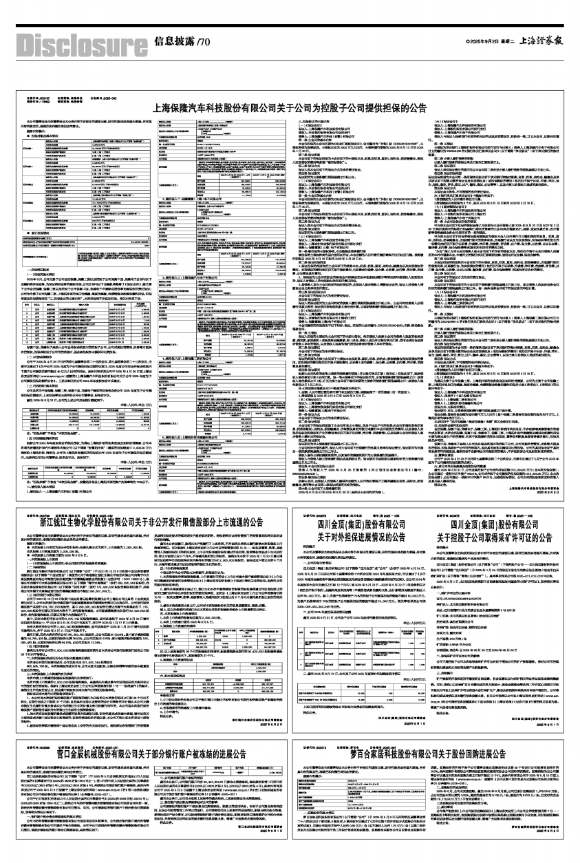 证券代码:603197 证券简称:保隆科技 公告编号:2025-093