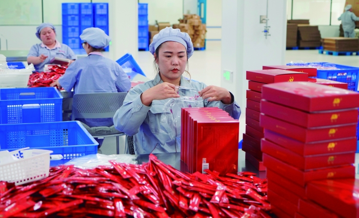 “我们用制药的标准生产保健品,原料均来自自有GAP基地。”健康科技公司副总经理沙莉介绍,公司专注于保健食品研发、生产与销售。在健康科技公司车间,记者通过宽敞的参观走廊和透明的观察窗,可直观看到4条生产线的运转情况。