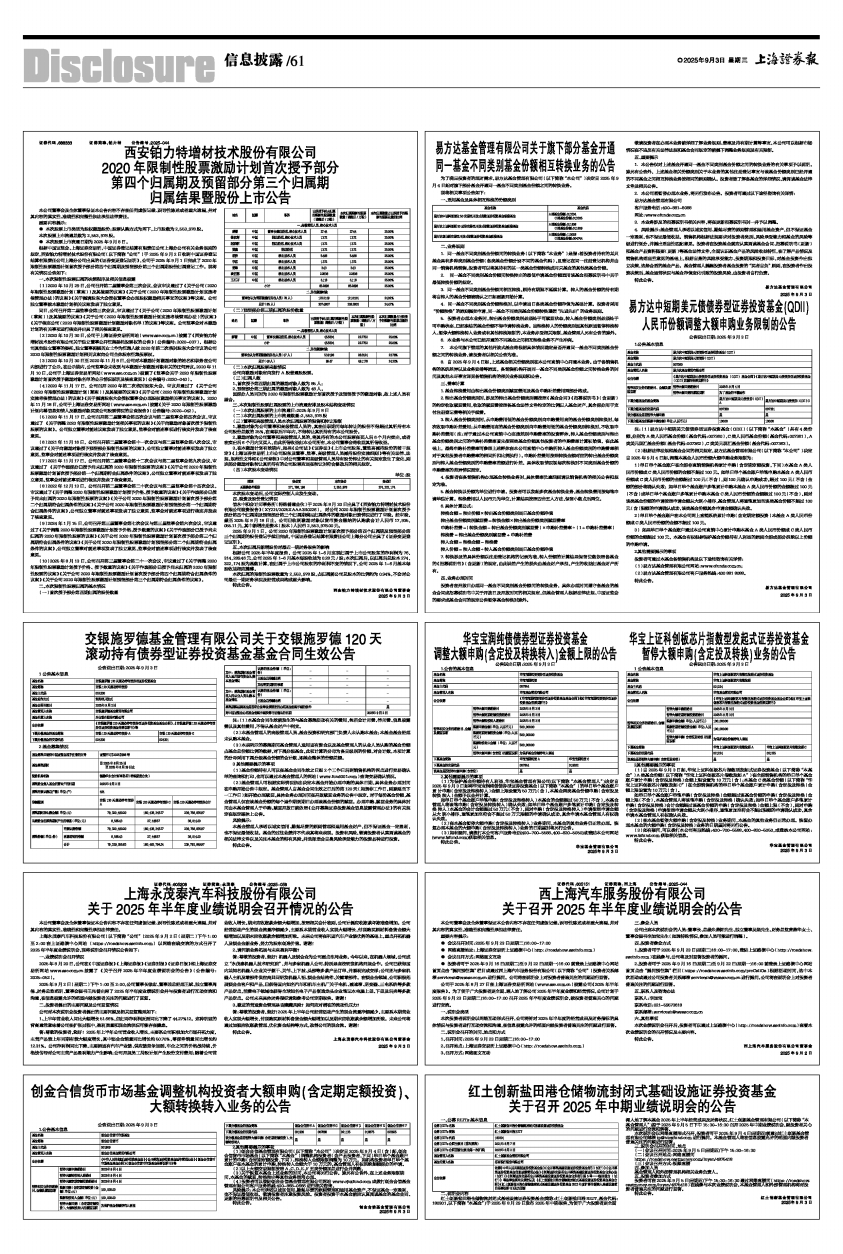 根据中国证监会、上海证券交易所、中国证券登记结算有限责任公司上海分公司有关业务规则的规定,西安铂力特增材技术股份有限公司(以下简称“公司”)于2025年9月2日收到中国证券登记结算有限责任公司上海分公司出具的《证券变更登记证明》,公司于2025年9月1日完成了2020年限制性股票激励计划首次授予部分第四个归属期及预留部分第三个归属期股份归属登记工作。现将有关情况公告如下: