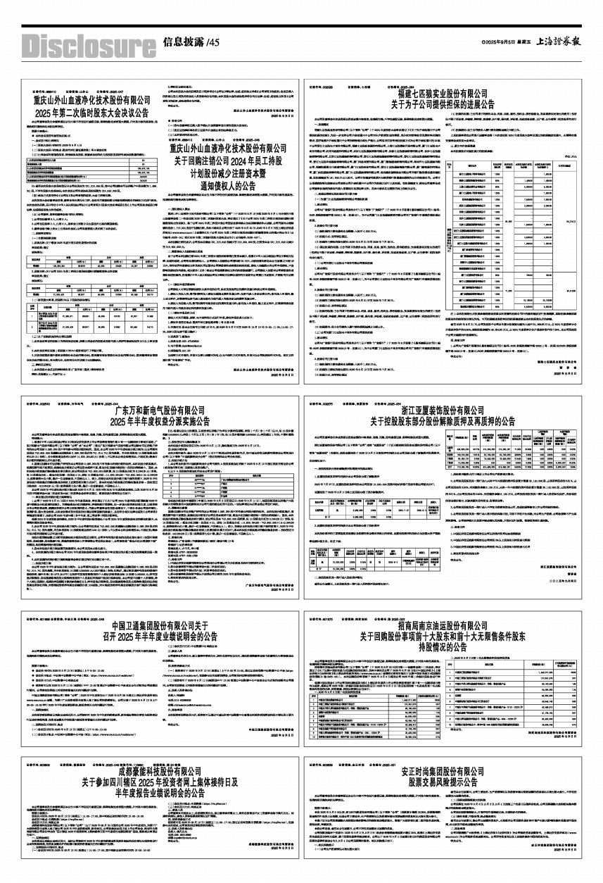 公司股票连续两个交易日(2025年9月2日、9月3日)收盘价格涨幅偏离值累计超过20%,根据《上海证券交易所交易规则》的有关规定,属于股票交易异常波动情形。公司已于2025年9月4日披露《安正时尚集团股份有限公司股票交易异常波动公告》,9月4日公司股票再次涨停。相关风险提示如下: