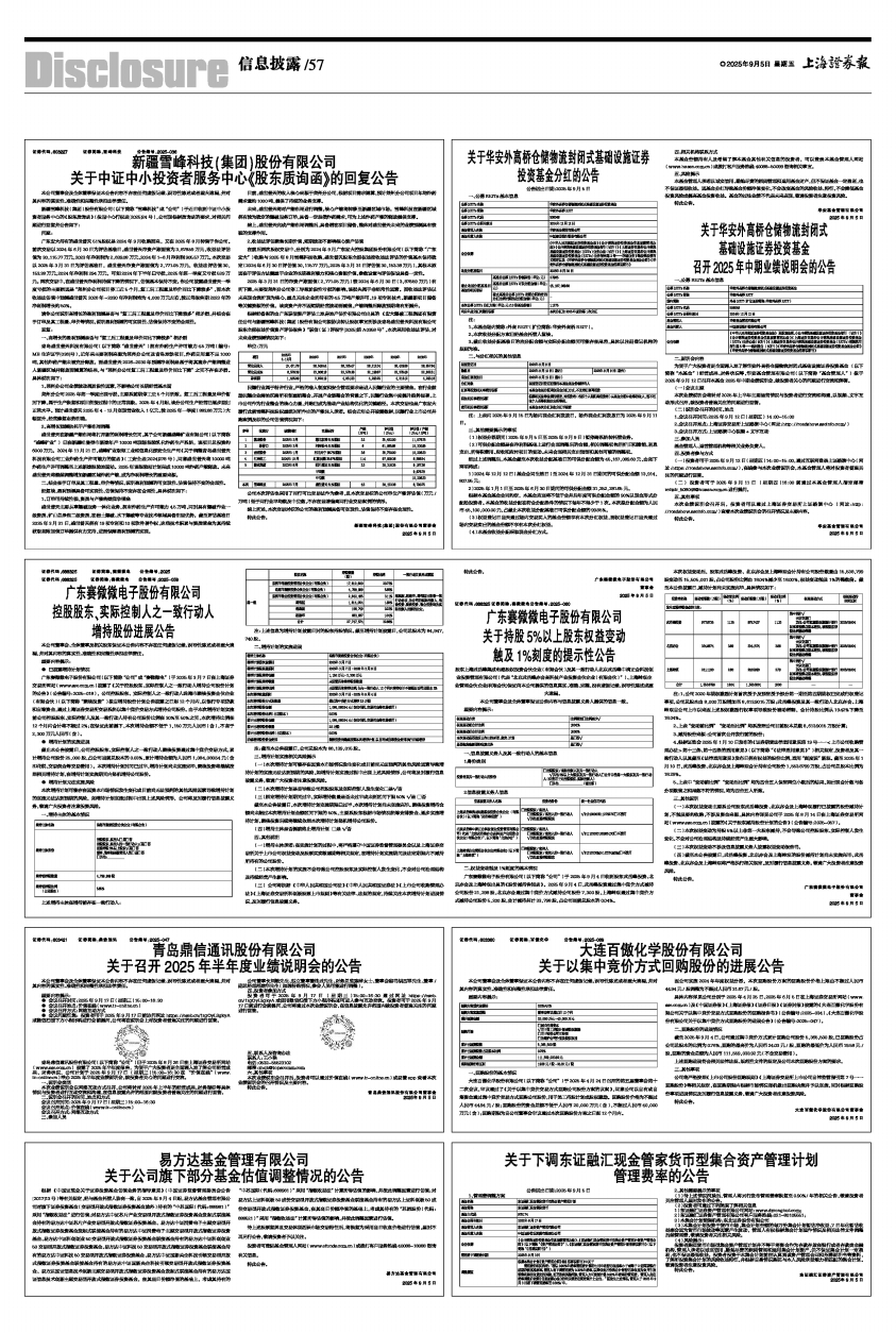 广东赛微微电子股份有限公司(以下简称“公司”)于2025年9月4日收到股东武岳峰投资、北京亦合及上海岭观出具的《股份减持告知函》。2025年9月4日,武岳峰投资通过集中竞价方式减持公司股份21,298股,北京亦合通过集中竞价方式减持公司股份7,300股,上海岭观通过集中竞价方式减持公司股份5,200股,合计减持共计33,798股,占公司当前总股本的0.04%。
