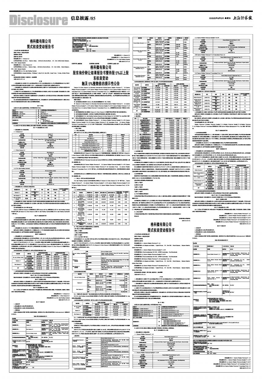 三、依据《中华人民共和国证券法》《上市公司收购管理办法》的规定,本报告书已全面披露了信息披露义务人在格科微有限公司中拥有权益和表决权的股份变动情况。