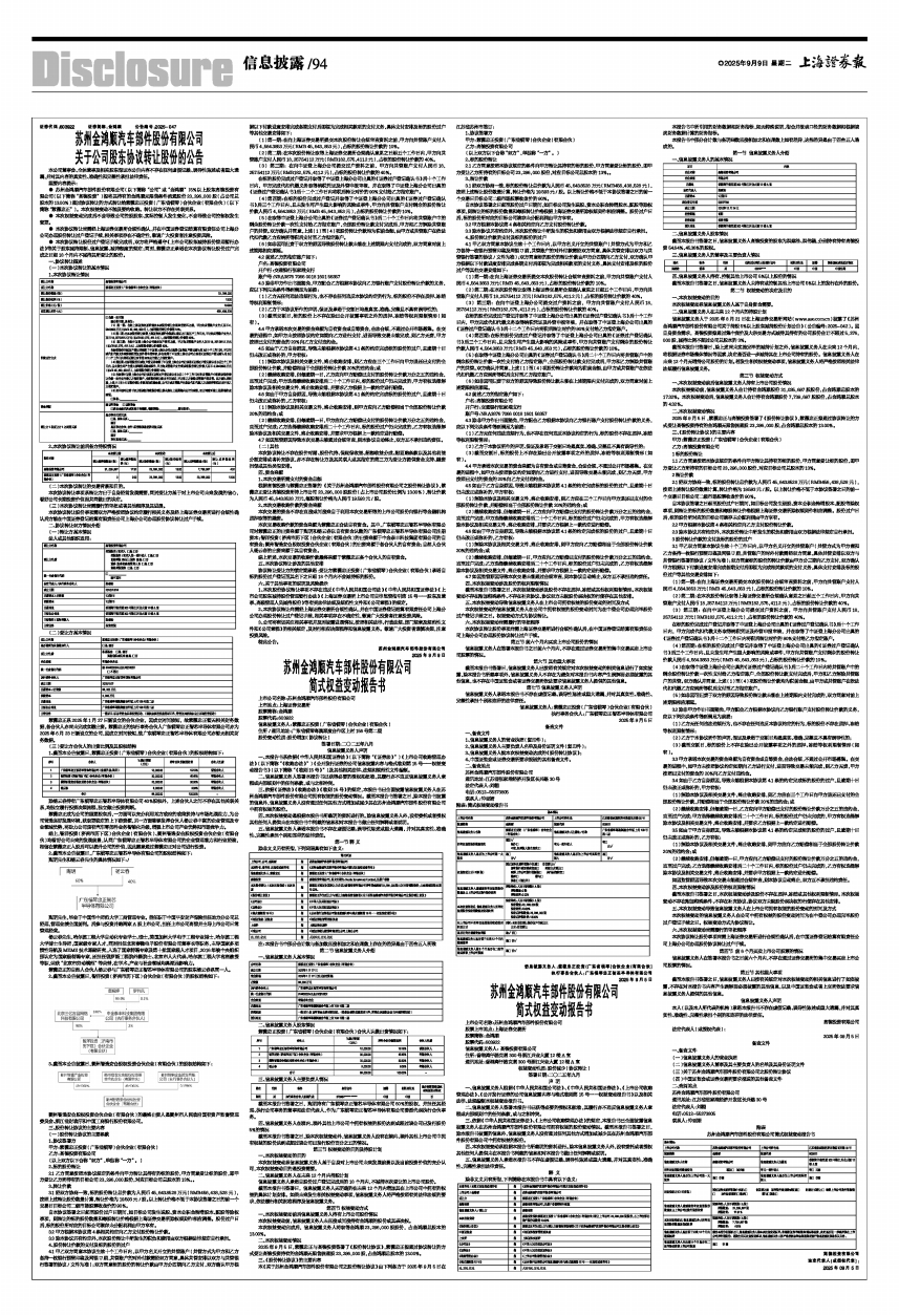 本《关于苏州金鸿顺汽车部件股份有限公司之股份转让协议》由下列各方于2025年9月5日在江苏省苏州市签订: