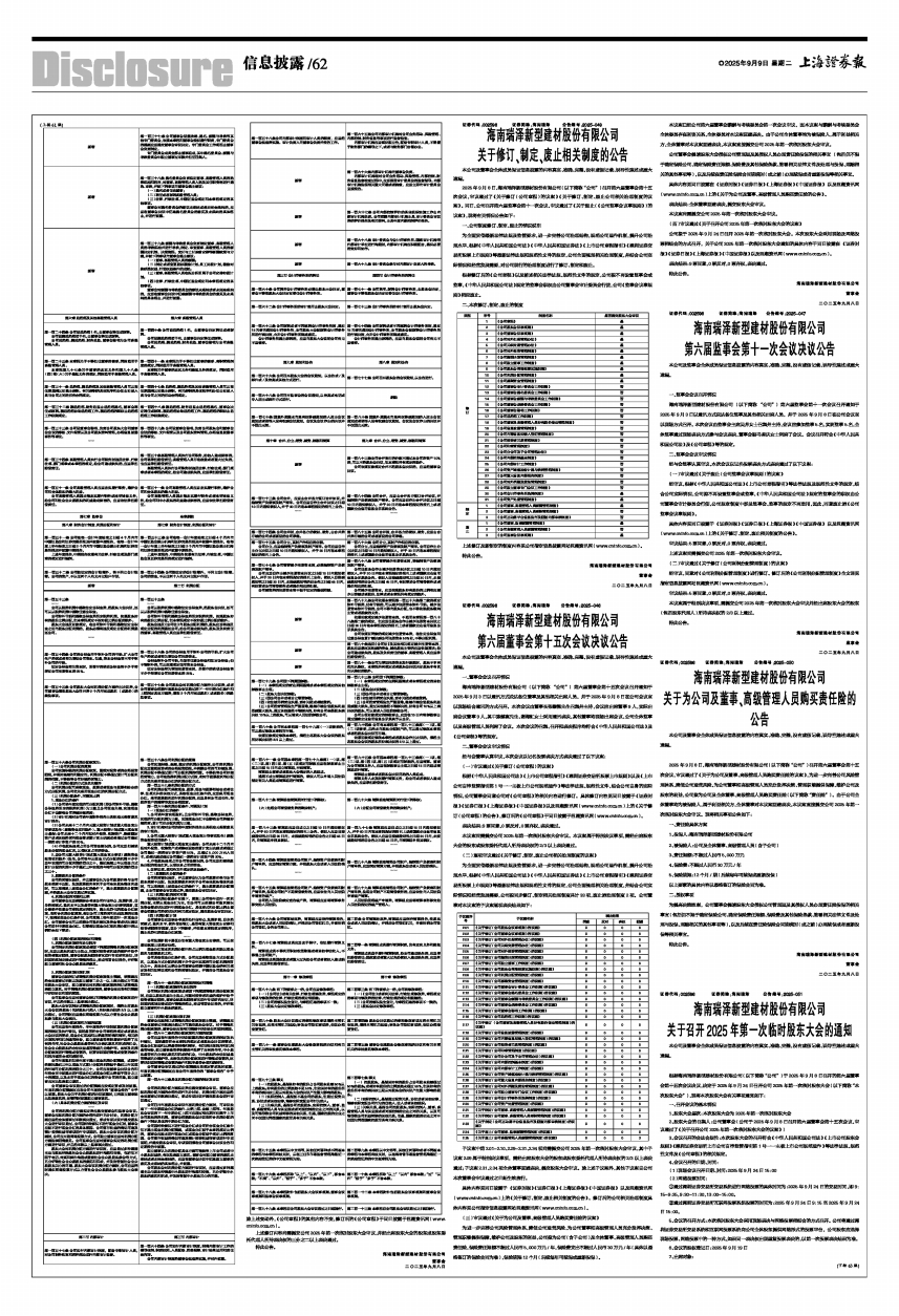 2025年9月8日,海南瑞泽新型建材股份有限公司(以下简称“公司”)召开第六届董事会第十五次会议,审议通过了《关于修订〈公司章程〉的议案》《关于修订、制定、废止公司相关治理制度的议案》。同日,公司召开第六届监事会第十一次会议,审议通过了《关于废止〈《公司监事会议事规则》〉的议案》,现将有关情况公告如下: