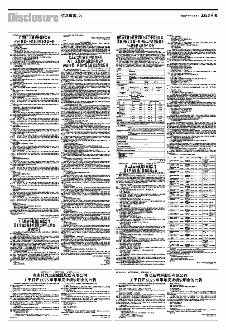 康欣新材料股份有限公司(以下简称“公司”)已于2025年8月14日发布公司2025年半年度报告,为便于广大投资者更全面深入地了解公司2025年半年度经营成果、财务状况,公司计划于2025年9月17日(星期三)9:00-10:00举行2025年半年度业绩说明会,就投资者关心的问题进行交流。