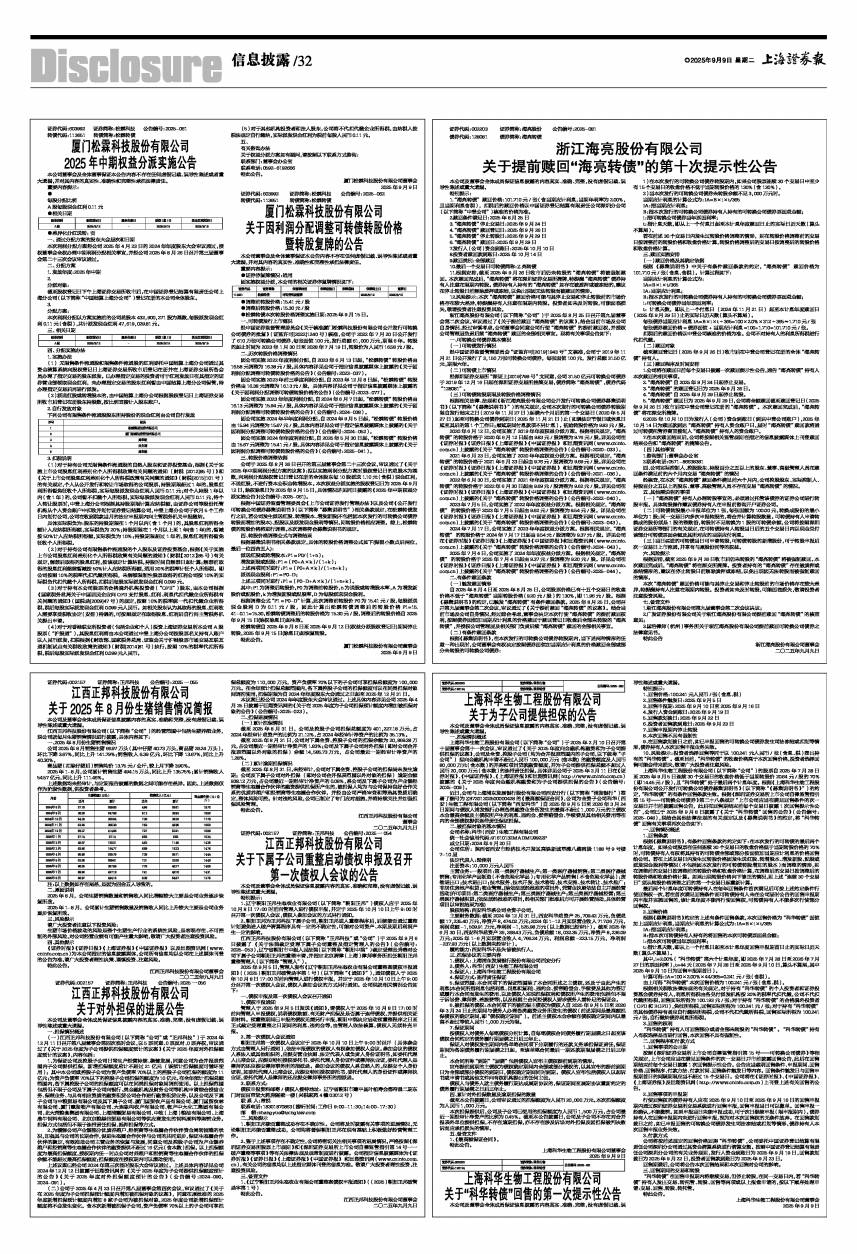 松霖转债自2025年9月8日至2025年9月12日(权益分派股权登记日)期间停止转股,2025年9月15日(除息日)起恢复转股。